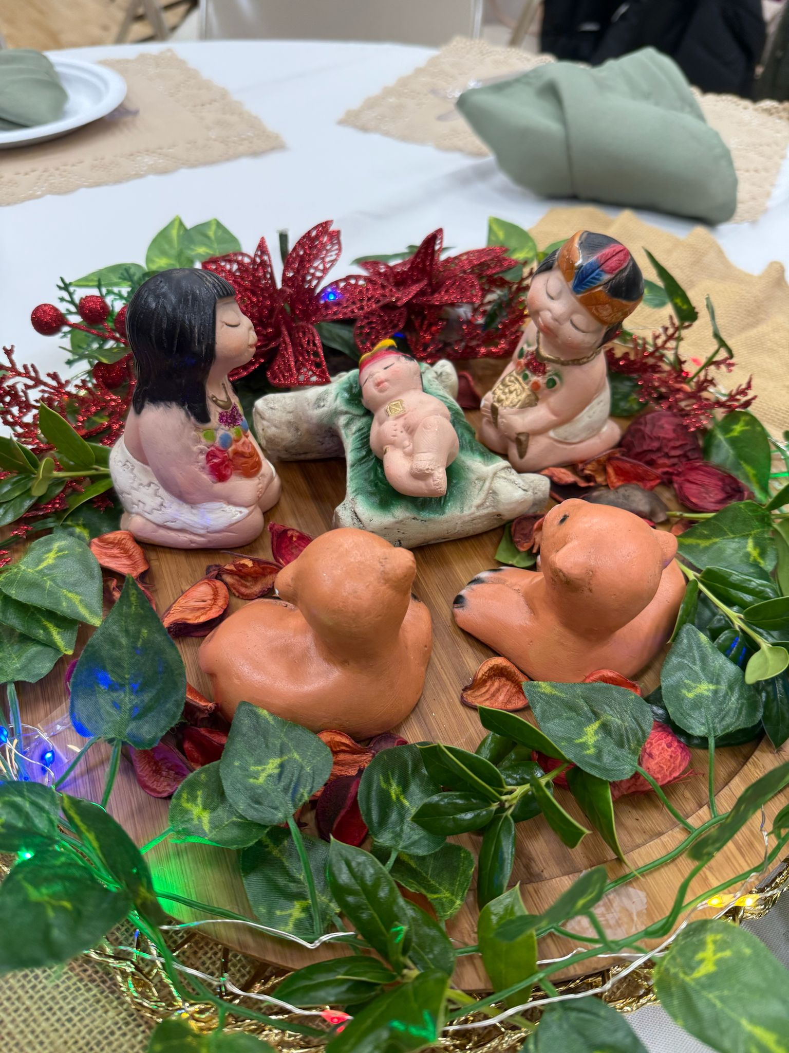 Each table was decorated by the students themselves. They brought pieces of their own traditions — objects, colors, and arrangements that reflected where they came from. No two tables looked alike. Together, the room looked like the world.