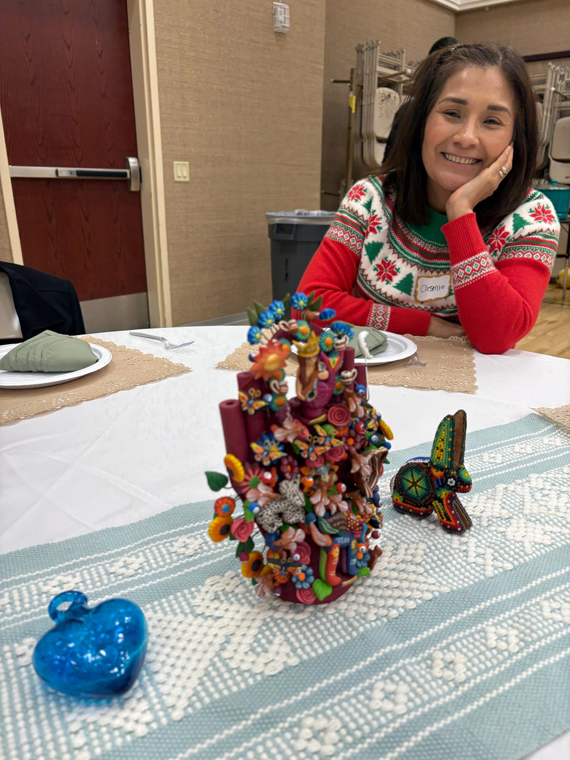 Each table was decorated by the students themselves. They brought pieces of their own traditions — objects, colors, and arrangements that reflected where they came from. No two tables looked alike. Together, the room looked like the world.