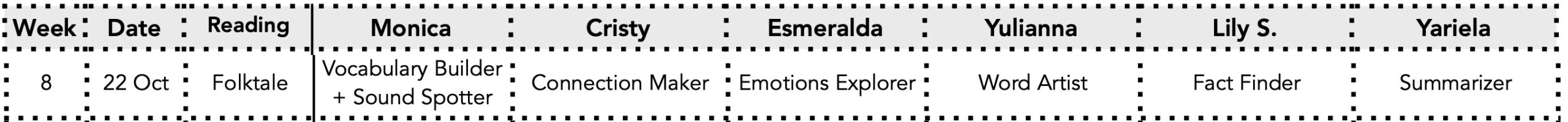 Weekly Book Club Roles: